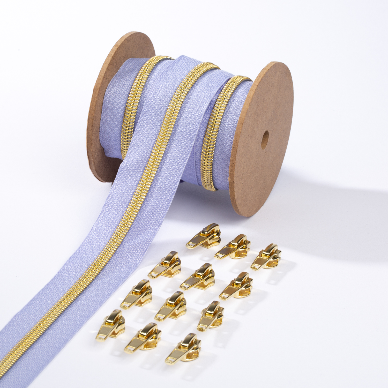 Guld blixtlås metalliserad 6,5mm pärla | 3m | ljuslila D268