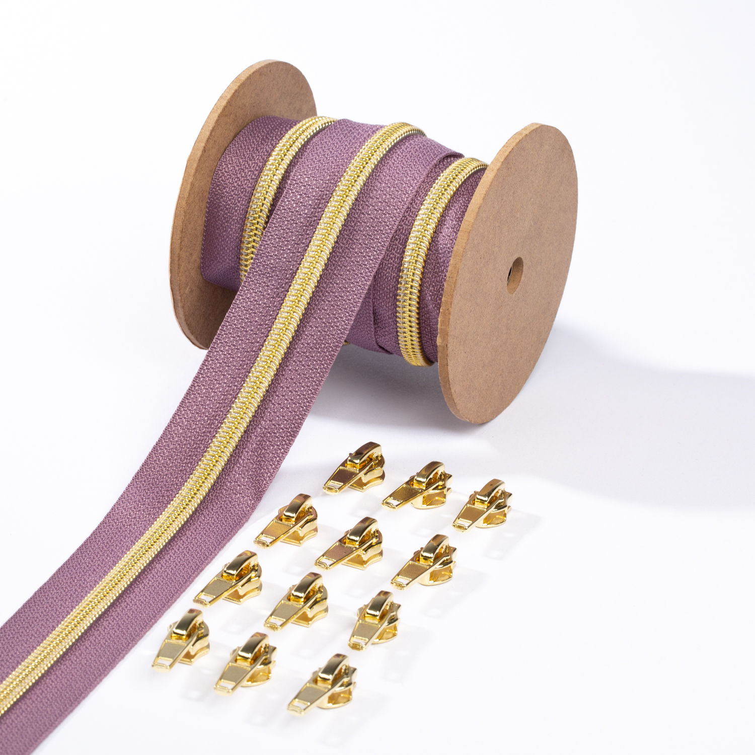 Guld blixtlås metalliserad 6,5mm pärla | 3m | ljuslila