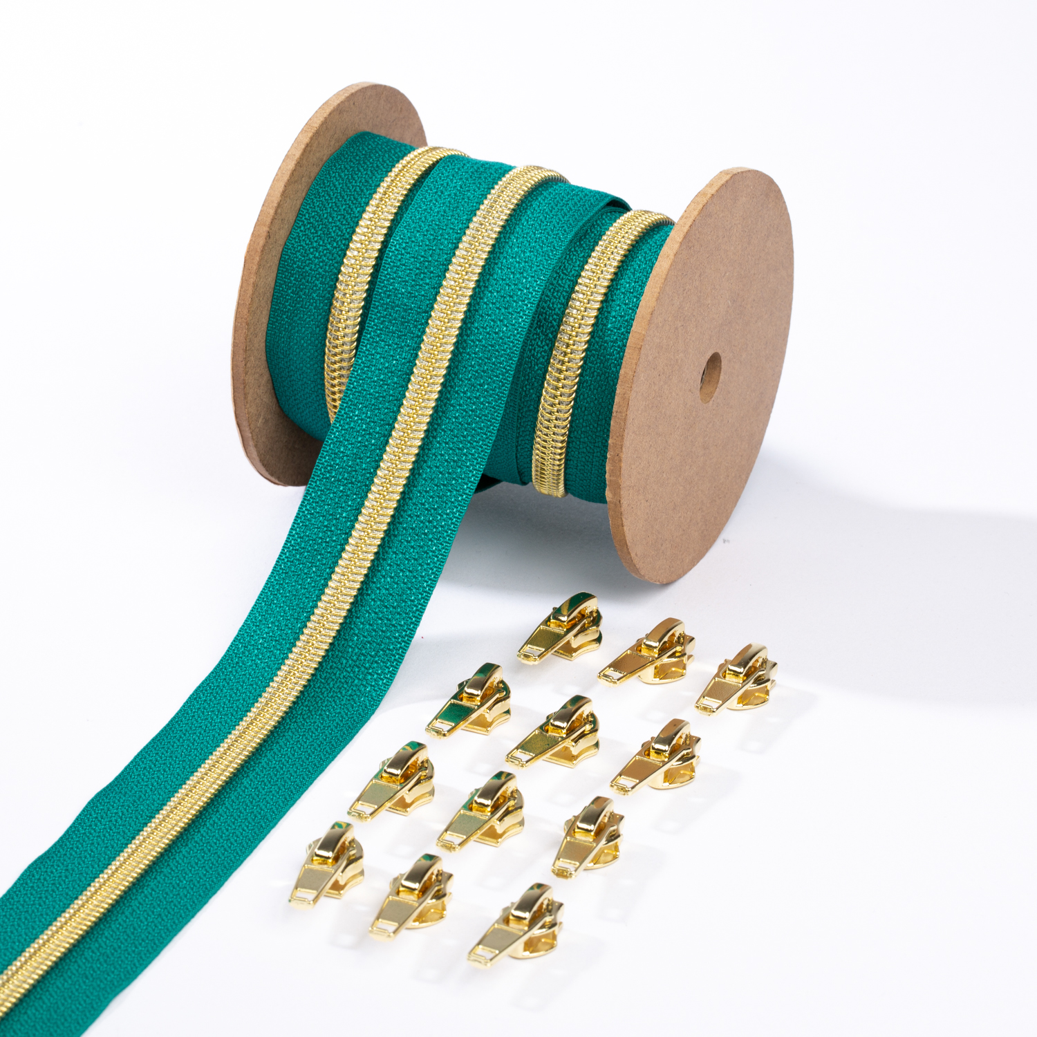 Guld blixtlås metalliserad 6,5mm pärla | 3m | Mörkt turkos