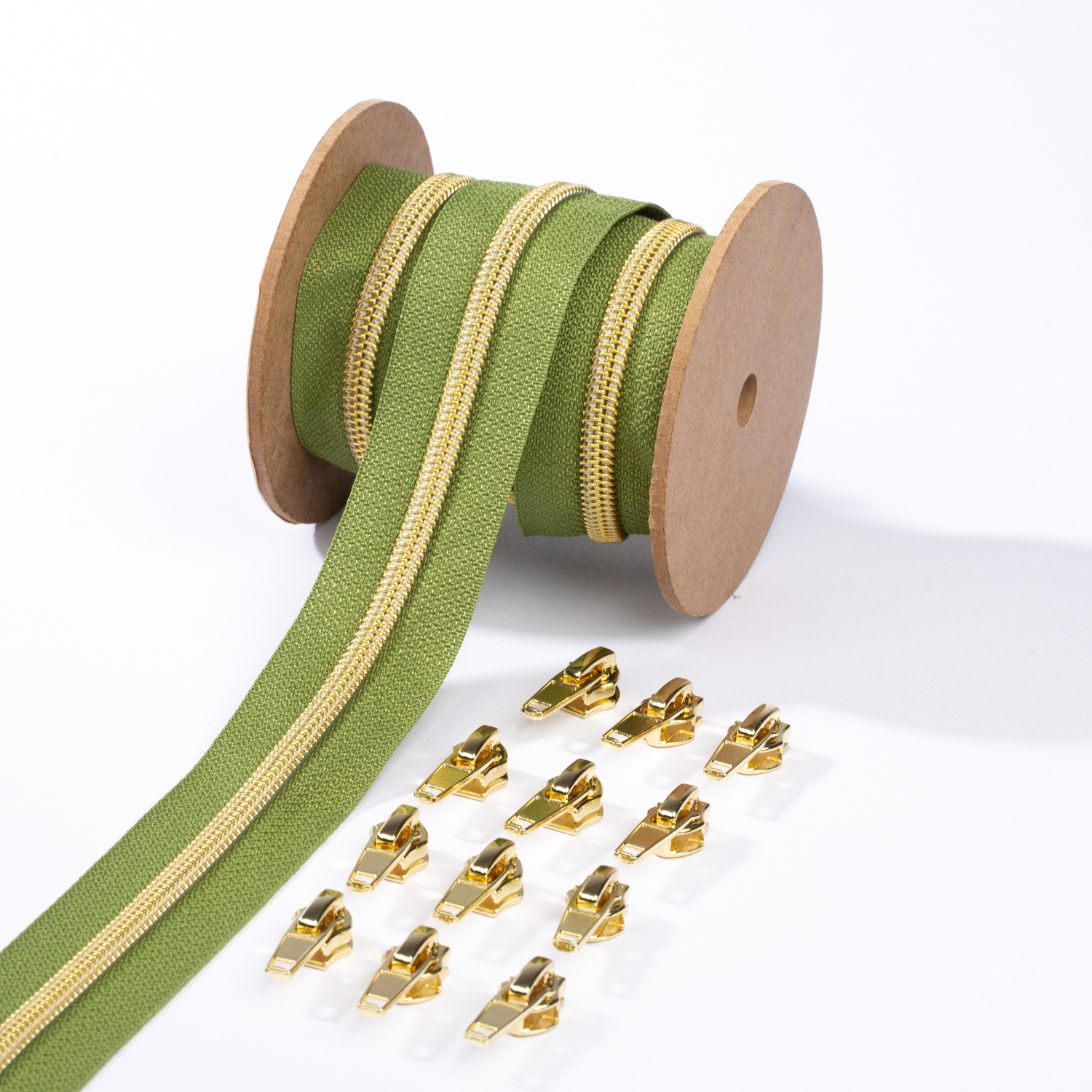 Guld blixtlås metalliserad 6,5mm pärla | 3m | oliv