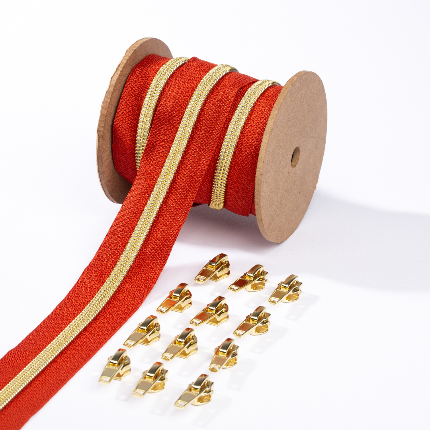Guld blixtlås metalliserad 6,5mm pärla | 3m | rost D045