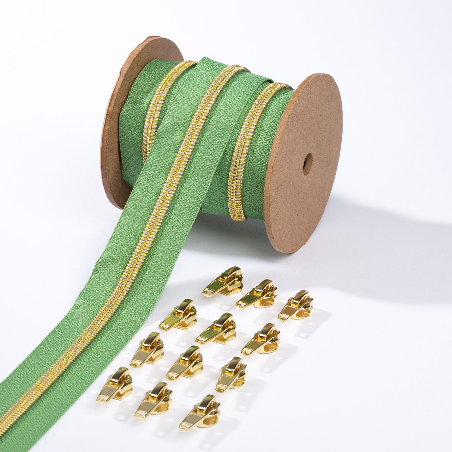 Guld blixtlås metalliserad 6,5mm pärla | 3m | salvia