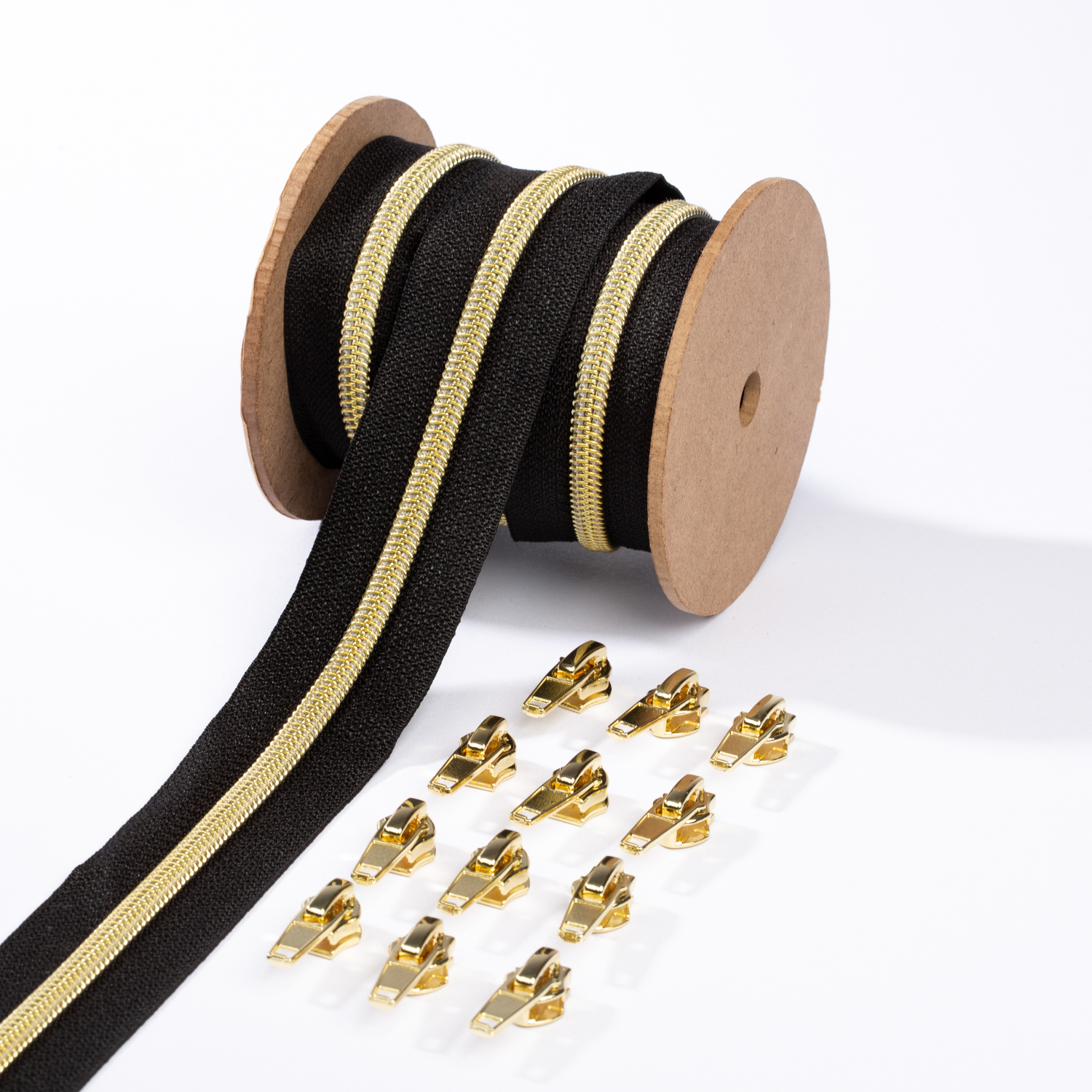 Guld blixtlås metalliserad 6,5mm pärla | 3m | svart