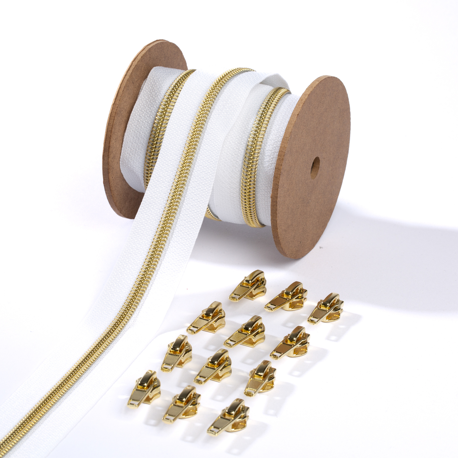 Guld blixtlås metalliserad 6,5mm pärla | 3m | Vit B3