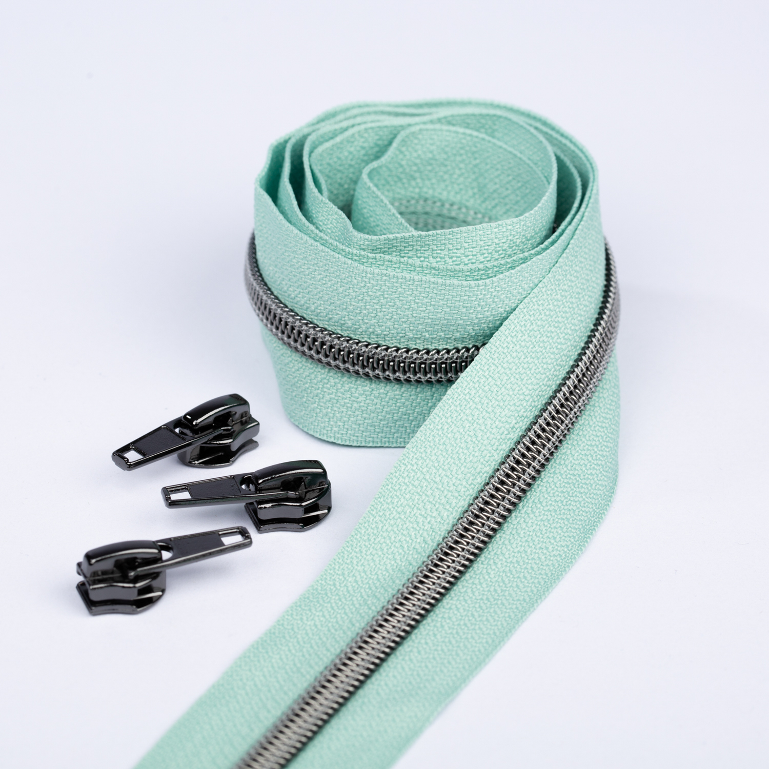 Gunmetal blixtlås metalliserad 6,5mm pärla | 1m | Mint D250