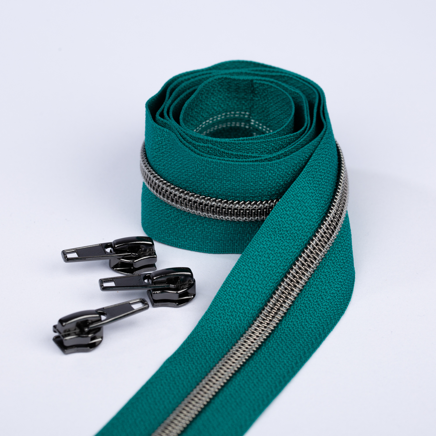 Gunmetal blixtlås metalliserad 6,5mm pärla | 1m | Mörkt turkos