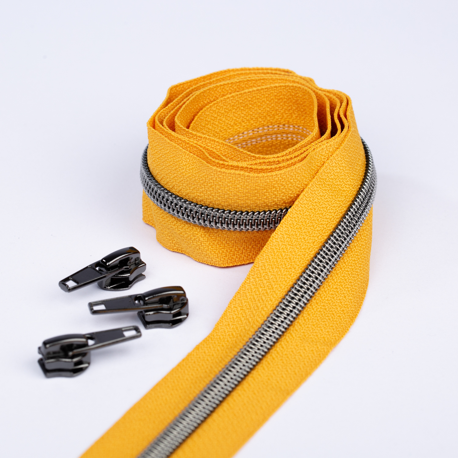 Gunmetal blixtlås metalliserad 6,5mm pärla | 1m | senap D846