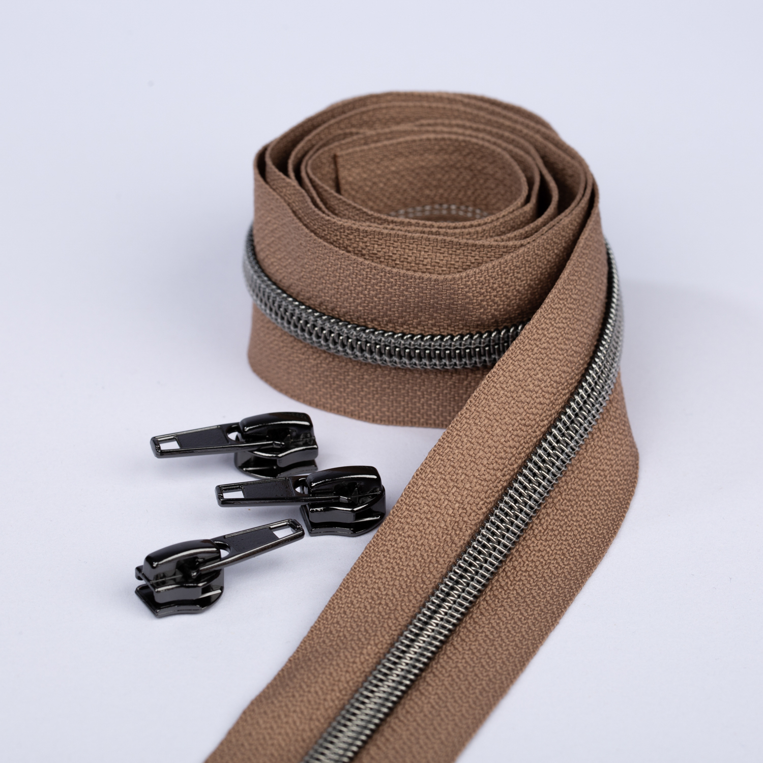 Gunmetal blixtlås metalliserad 6,5mm pärla | 1m | Taupe D894