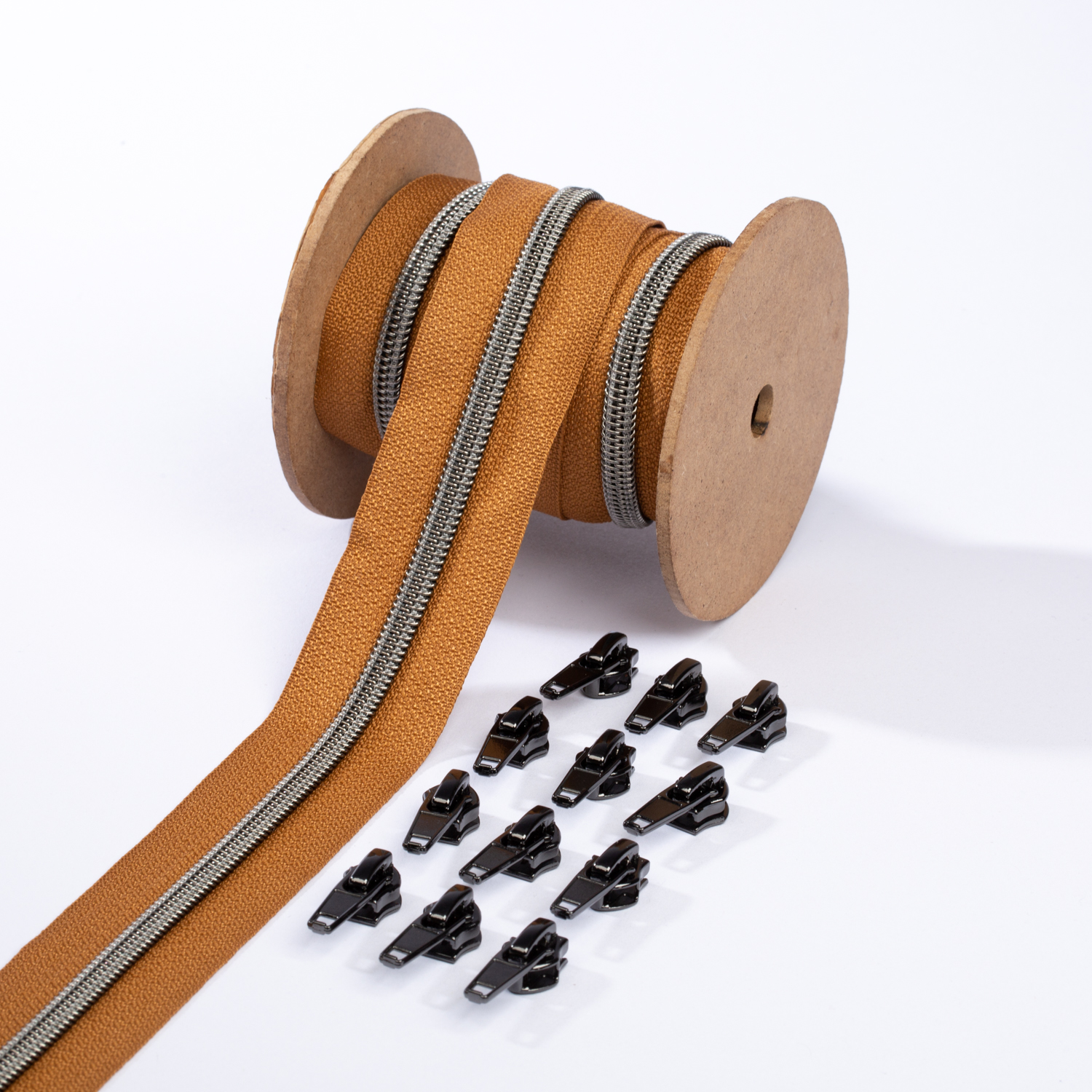 Gunmetal blixtlås metalliserad 6,5mm pärla | 3m | guldbrun D857