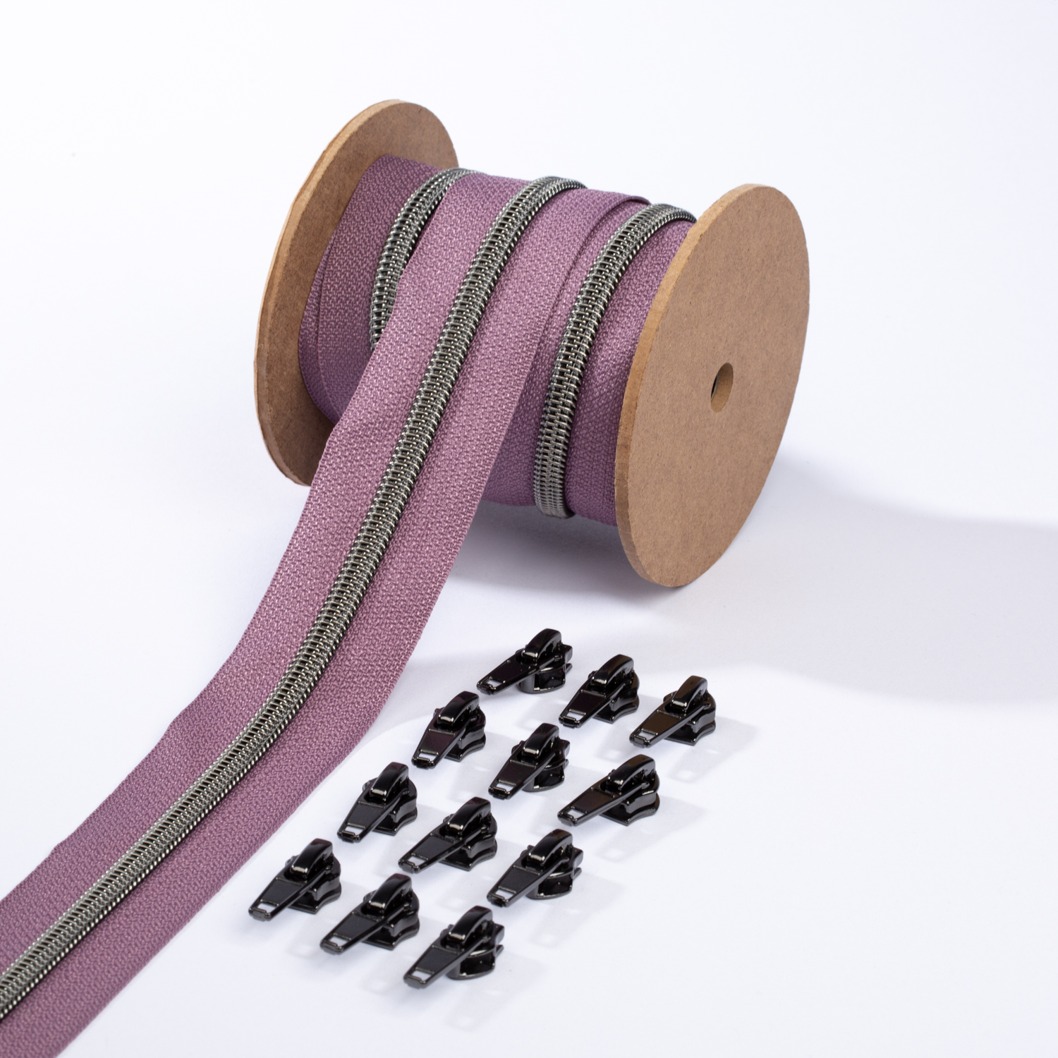 Gunmetal blixtlås metalliserad 6,5mm pärla | 3m | ljuslila