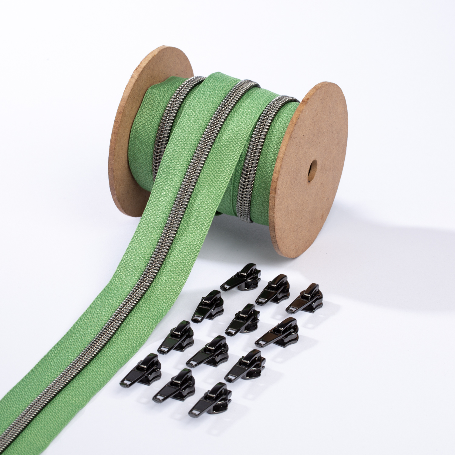 Gunmetal blixtlås metalliserad 6,5mm pärla | 3m | salvia