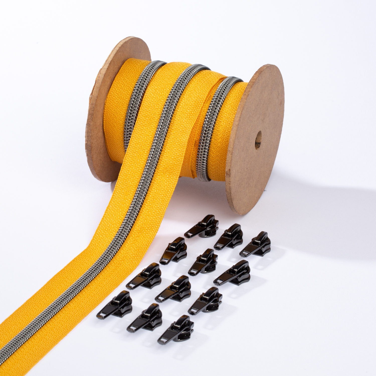 Gunmetal blixtlås metalliserad 6,5mm pärla | 3m | senap D846