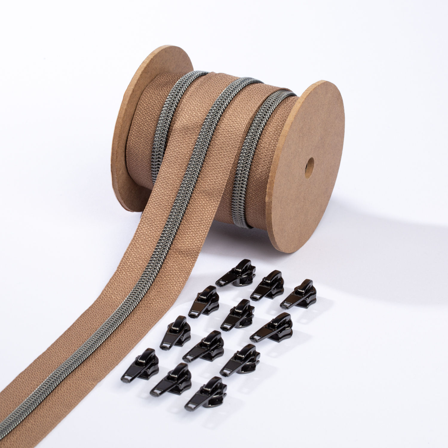 Gunmetal blixtlås metalliserad 6,5mm pärla | 3m | Taupe D894