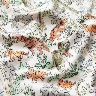Bomullspoplin dinosaurier och ränder Digitaltryck – vit/vasskr 209,95 / m (kr 139,97 / m²)