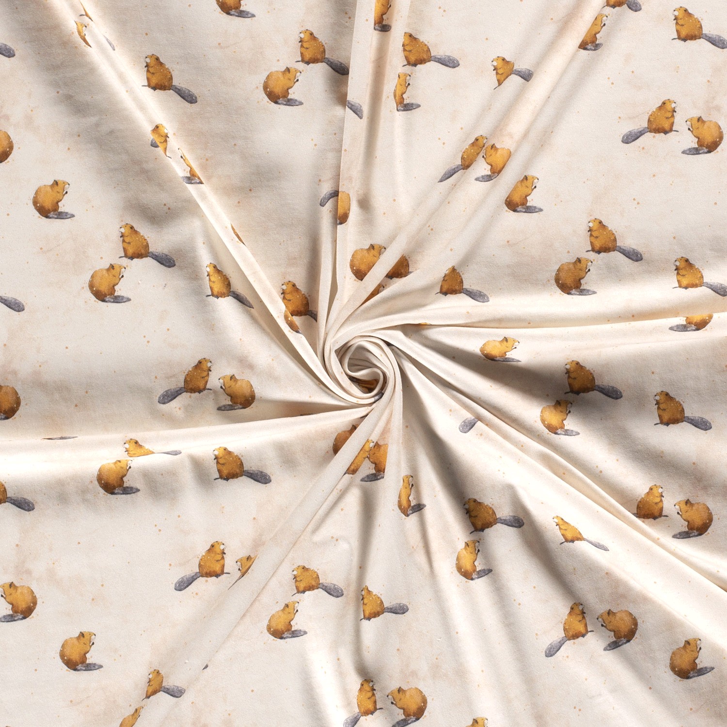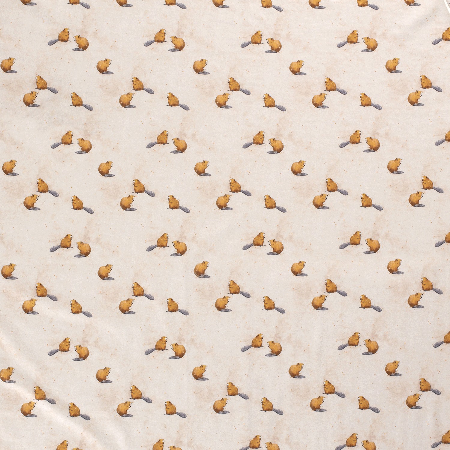 En ljuvlig blickfångare för små och stora naturälskare: På en varm, cremefärgad bakgrund leker kärleksfullt illustrerade bävrar i mjuka bruna och beige toner. Fina detaljer som svansar, tassar och små ansikten är charmigt tecknade och ger designen en glad och barnvänlig känsla. Däremellan finns diskreta grafiska element i harmoniskt matchade naturfärger som gör helheten lugn men ändå livfull.