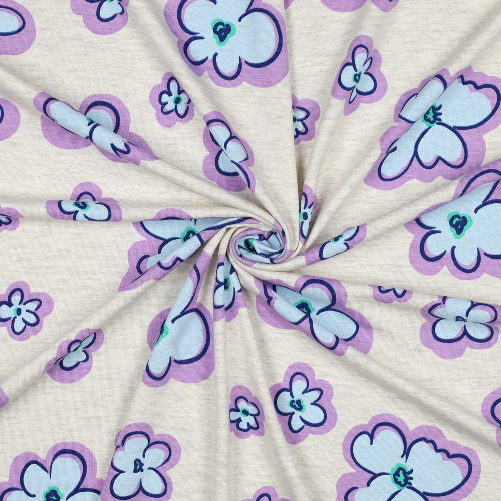 Jersey - Blommor Ecru Melange