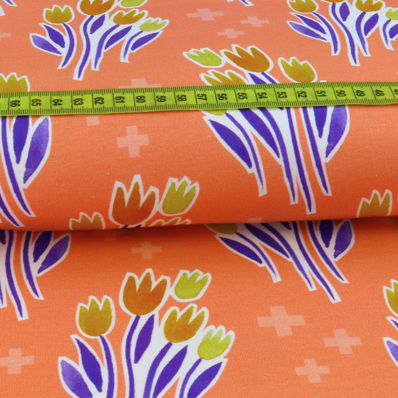 Den mjuka, släta jerseyn känns behaglig mot huden och följer alla dina rörelser med lätthet - perfekt för bekväma men ändå feminina outfits. Vare sig det gäller romantiska klänningar, lekfulla skjortor, mysiga leggings, barnkläder eller vackra accessoarer som mössor och slingor: Det här tyget ger alltid en härlig, fräsch accent.