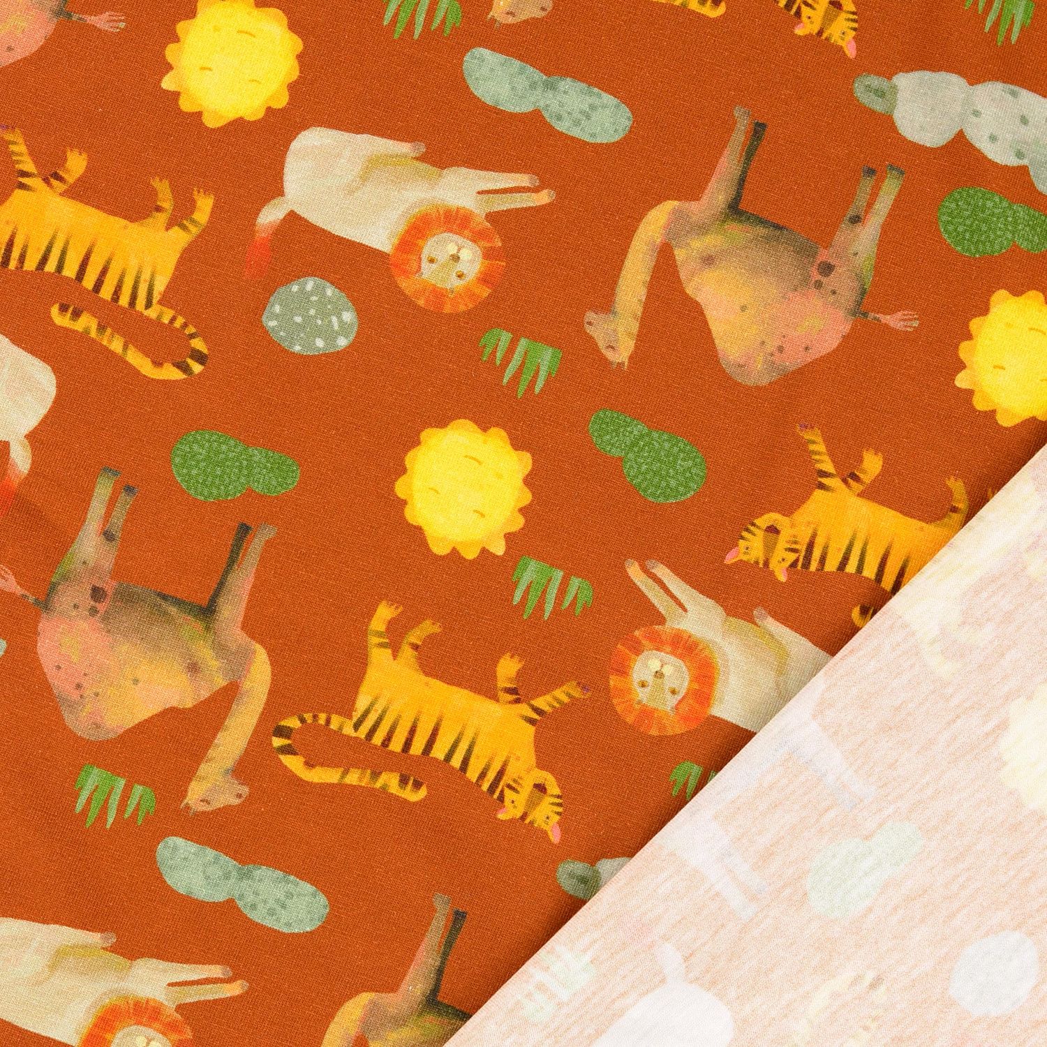 Oavsett om den ska vara en blickfångare i vardagen eller för speciella tillfällen: denna jersey med safaridjur-design ger värme, naturlighet och en nypa längtan till varje syprojekt.