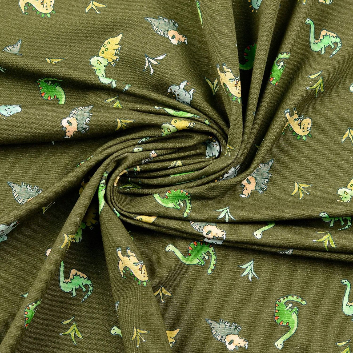 Ett tyg som ett litet dino-äventyr: På den mjuka khaki-bakgrunden leker kärleksfullt designade små dinosaurier i harmoniska naturtoner. Milda gröna och bruna nyanser, mjuka beige och grå toner samt fina detaljer i dämpade färger gör motivet lekfullt men inte för färgglatt – perfekt för dem som gillar barnsligt men stilfullt.
