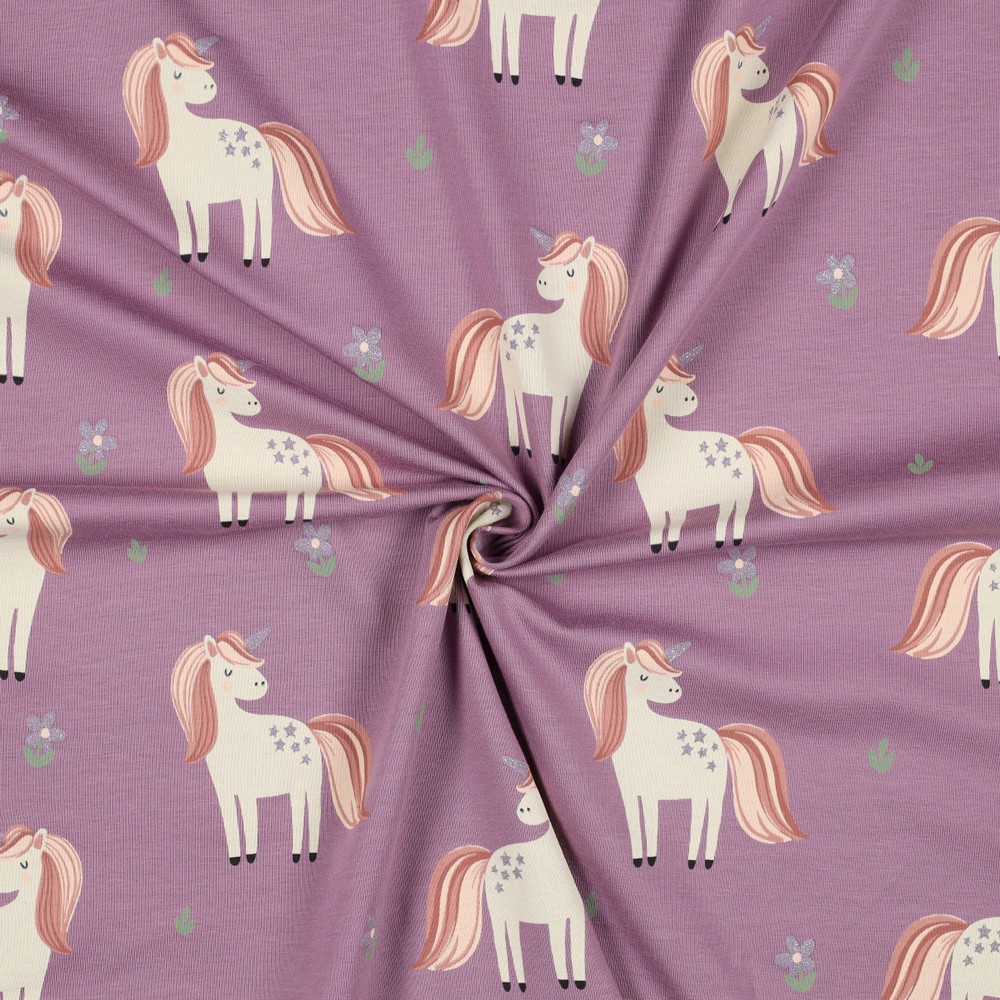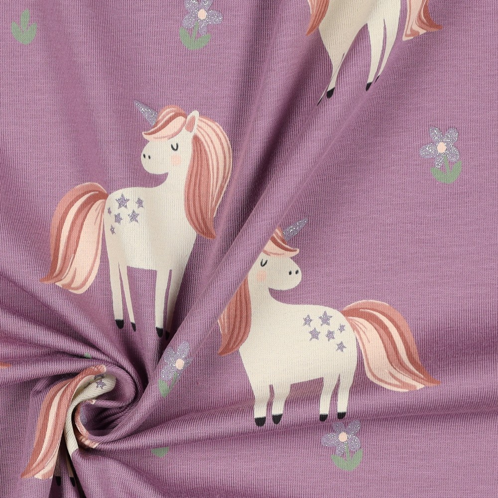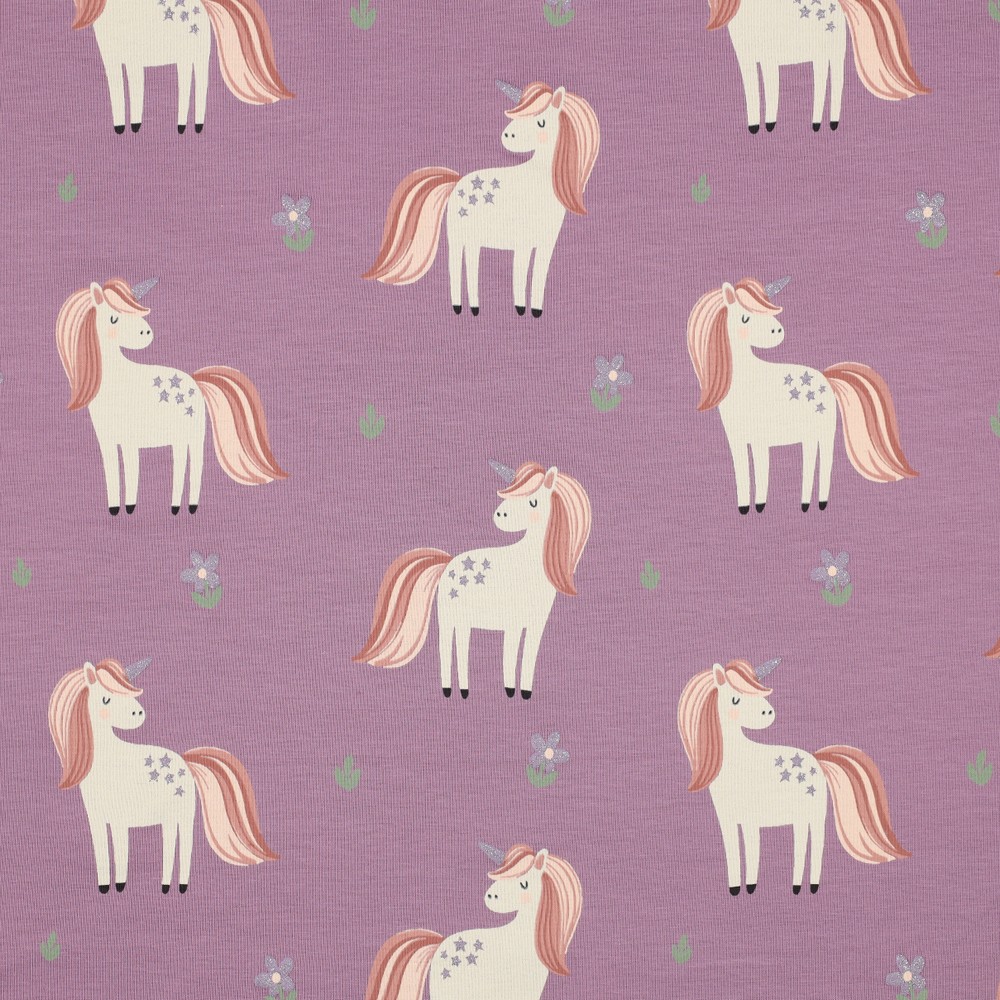 Jersey - Enhörningar Glitter Mauve Yarndyed