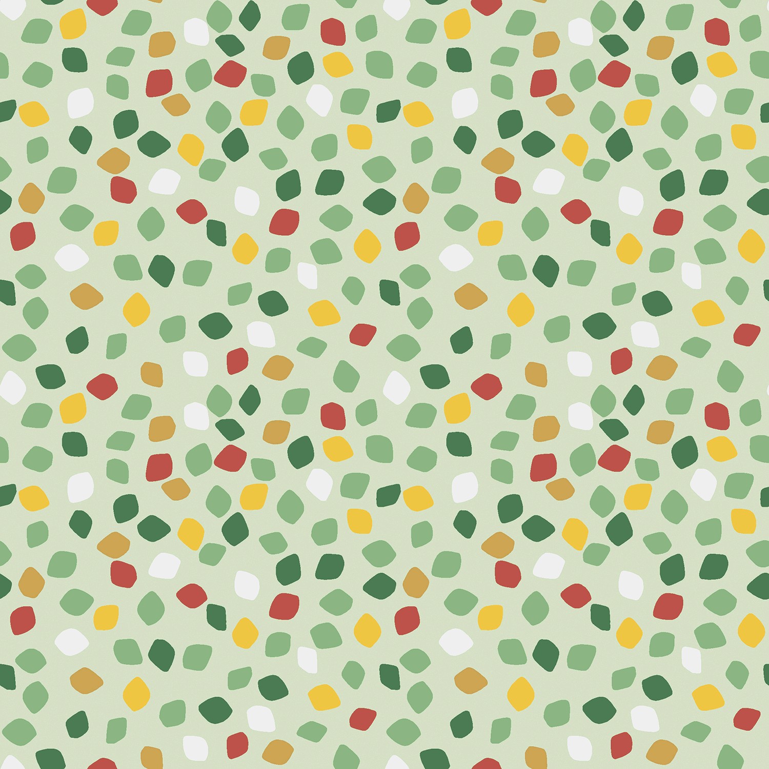 En glad färgpalett för dina syidéer: På en mjuk ljus mintgrön bakgrund dansar små färgglada rektanglar i rosa, gult, blått, petrol, lila och andra fräscha nyanser omkring. Det grafiska mönstret påminner om färgglada mosaikbitar och känns lekfullt, modernt och livfullt – perfekt för att sprida glädje i varje outfit.