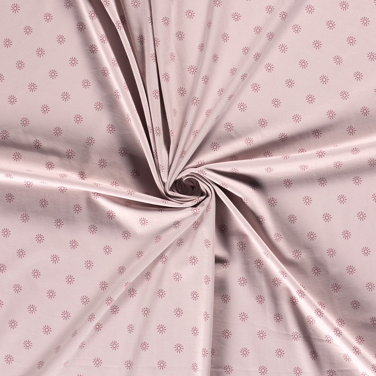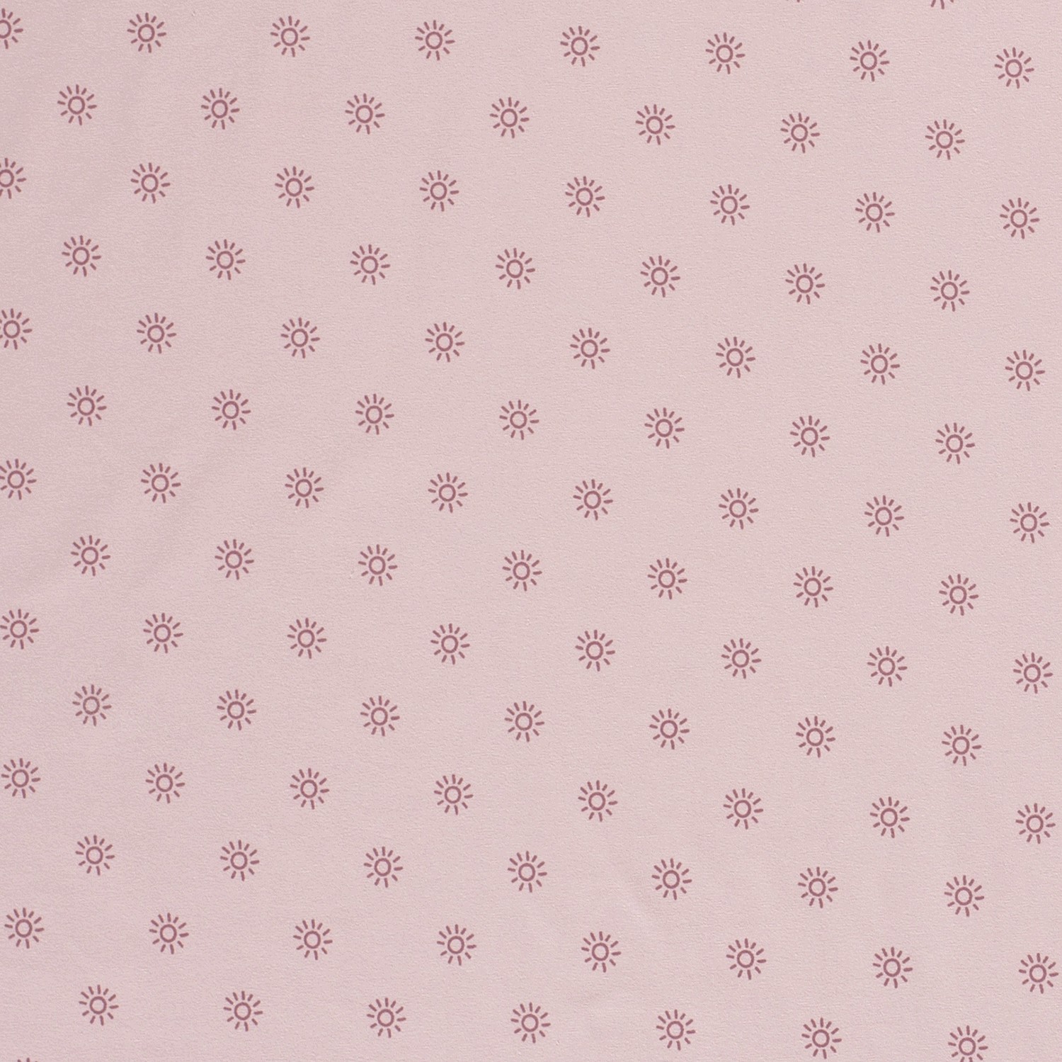 Mjukt solsken för dina sömnadsprojekt: På en ljusrosa bakgrund strålar små, vänligt leende solar med fina strålar. Det lekfulla motivet känns lätt, glatt och underbart barnsligt – perfekt för alla som gillar sött och soligt.