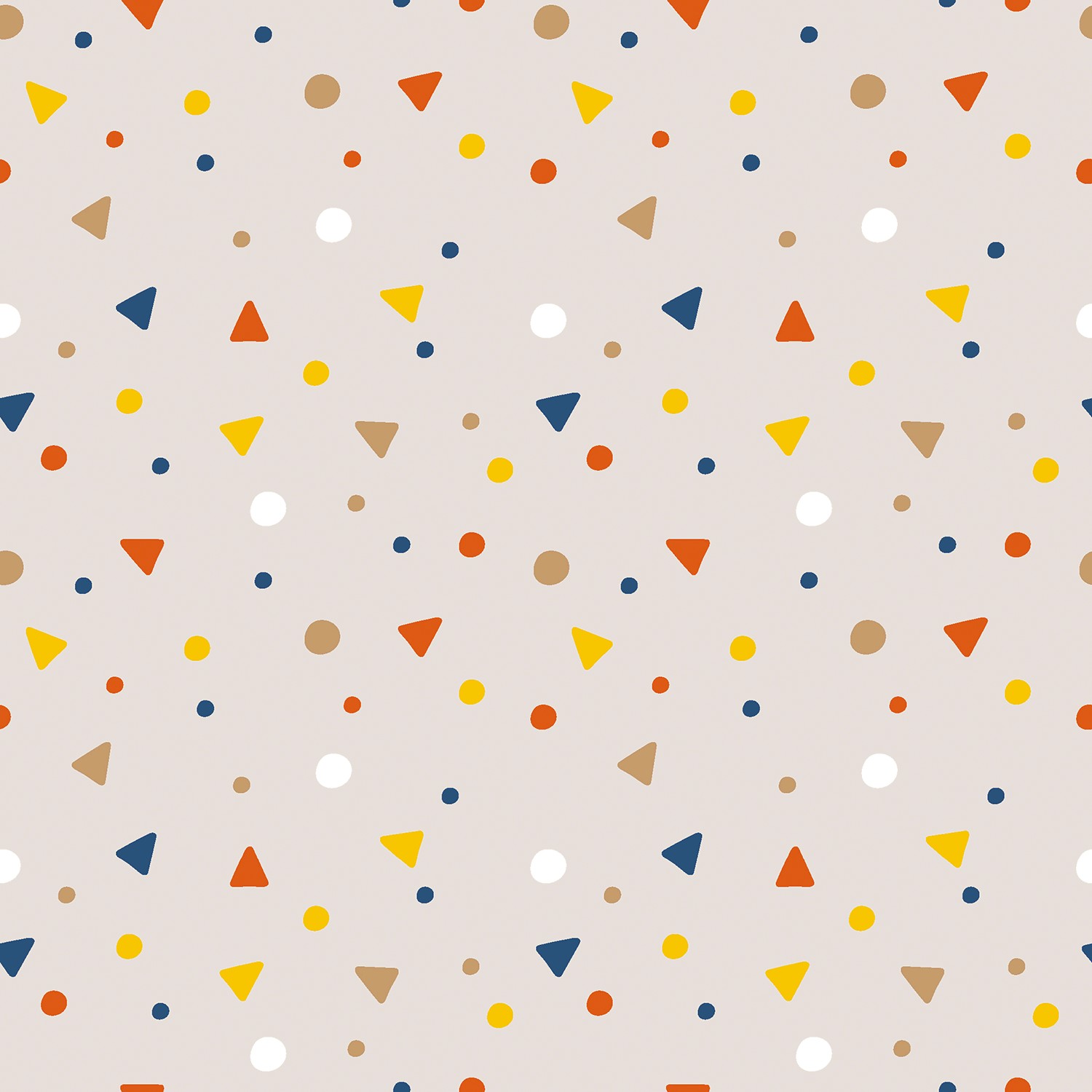 Mjukt ljusbeige möter ett lekfullt mönster med fina prickar och små trianglar – en modern men ändå tidlös stil. De diskreta, mörkare prickarna och mini-trianglarna är jämnt fördelade över tyget och påminner om en stiliserad konfettidesign: enkel, glad och underbart att kombinera.
