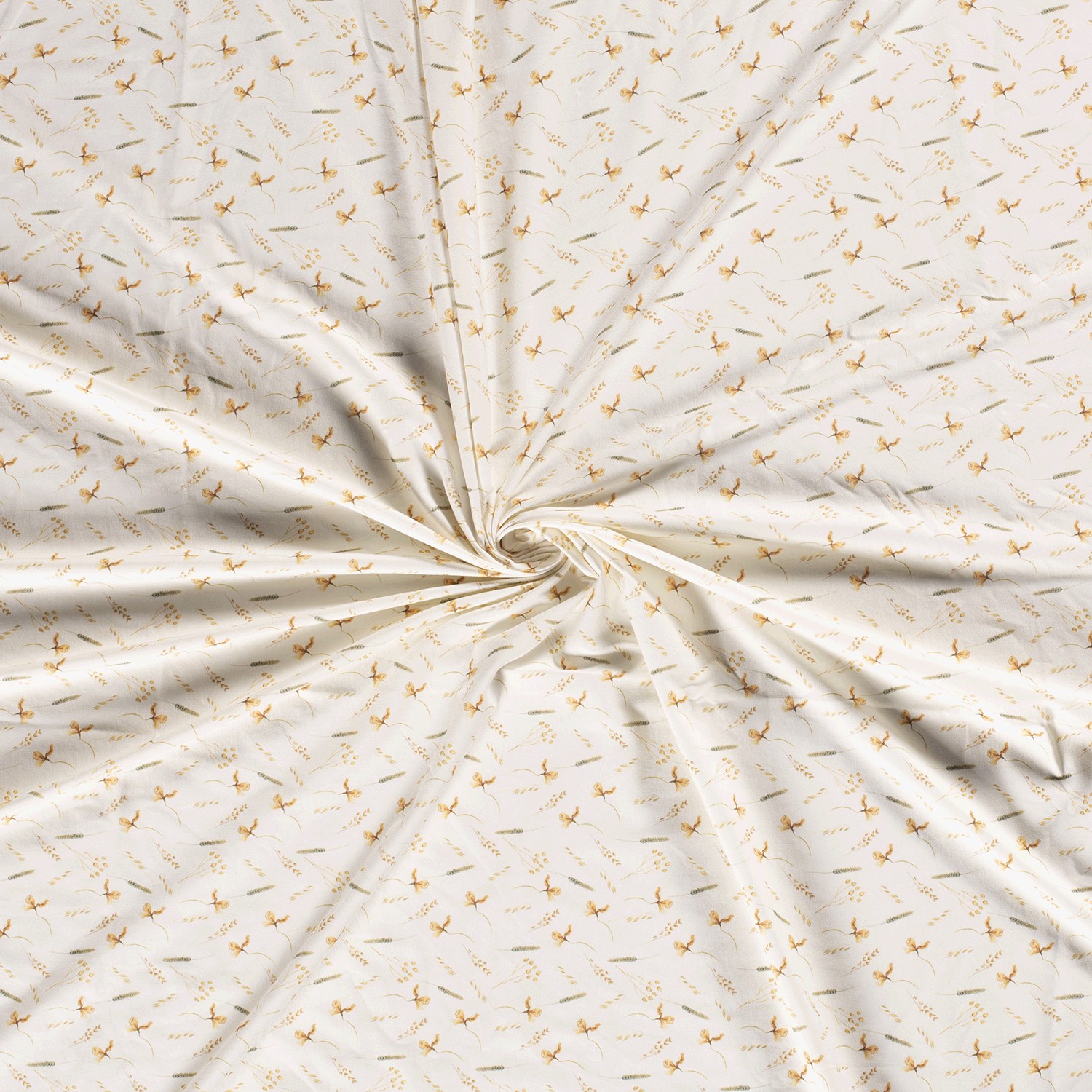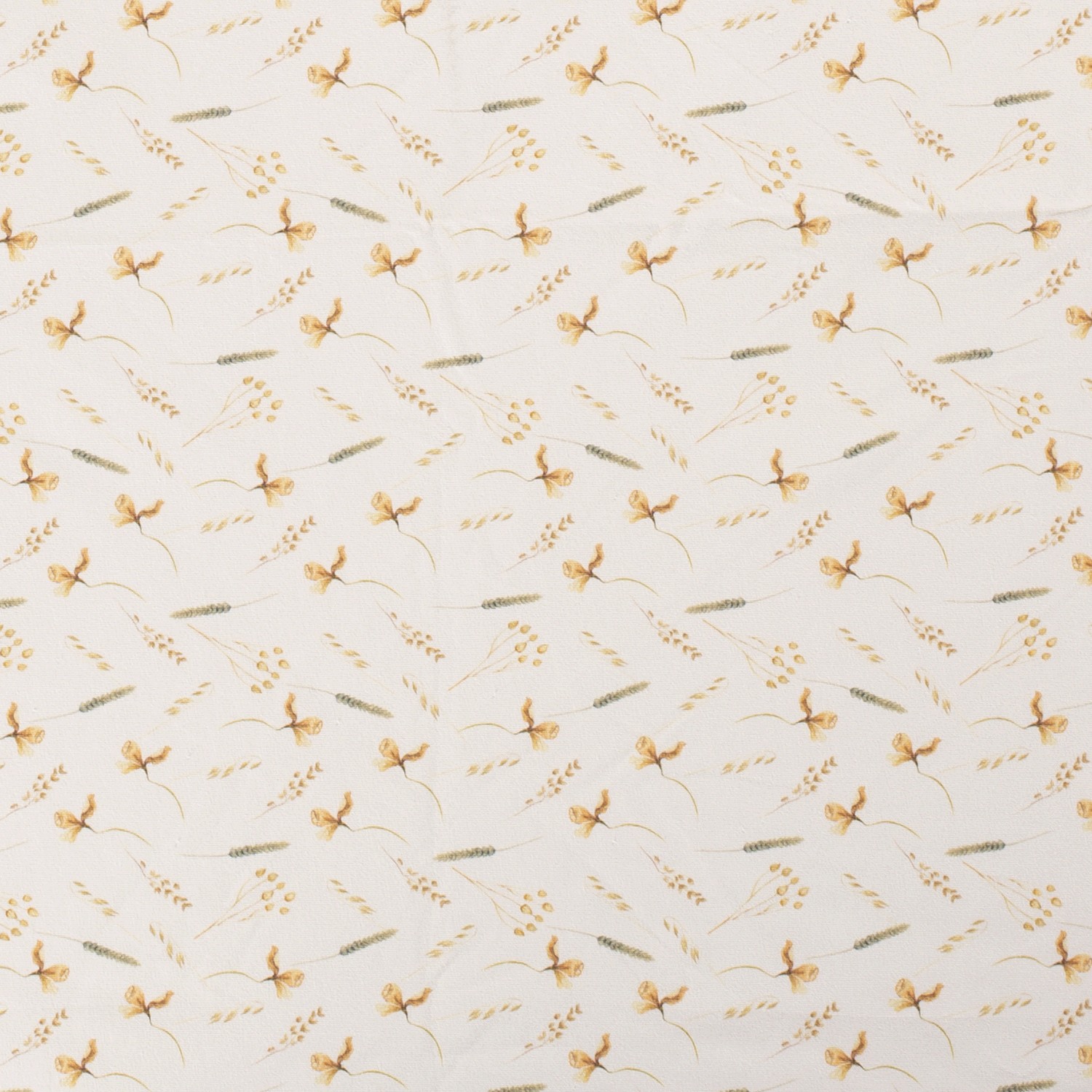 En mjuk krämton möter fina naturmotiv: På denna jersey slingrar sig tunna sädeskorn i varma beige- och bruna nyanser över tyget och påminner om soliga sommarfält i kvällsljus. De detaljrik tecknade kornen känns lätta och eleganta och ger dina syprojekt en lugn, naturlig utstrålning.