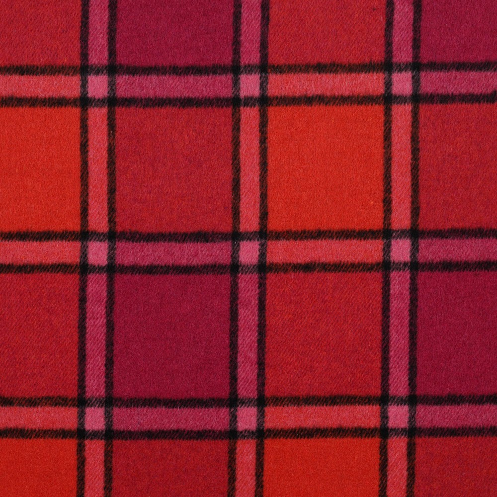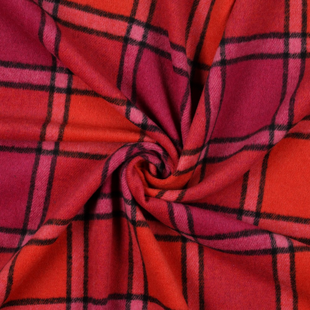 Tyg som är gjort för favoritkappor: Denna borstade kappväv i starkt fuchsia drar allas blickar till sig. Det markanta rutmönstret kombinerar intensiva rosa- och fuchsiatoner med mörka, nästan svarta linjer och fina, ljusare accenter – vilket skapar en modern, urban look med klassisk rutig charm.
