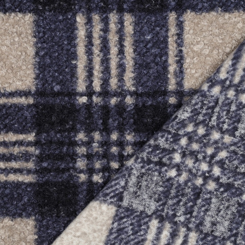 Detta kappväv i bouclé-look förenar rustik skogshuggarcharm med modern elegans. Det markanta rutmönstret i olika blå nyanser genomsyras av diskreta, varma naturtoner och ger samtidigt ett avslappnat och stilfullt intryck. Den typiska bouclé-strukturen med sina fina öglor och den lätt ojämna ytan ger en underbart mjuk, voluminös känsla och ett ädelt, texturerat utseende.
