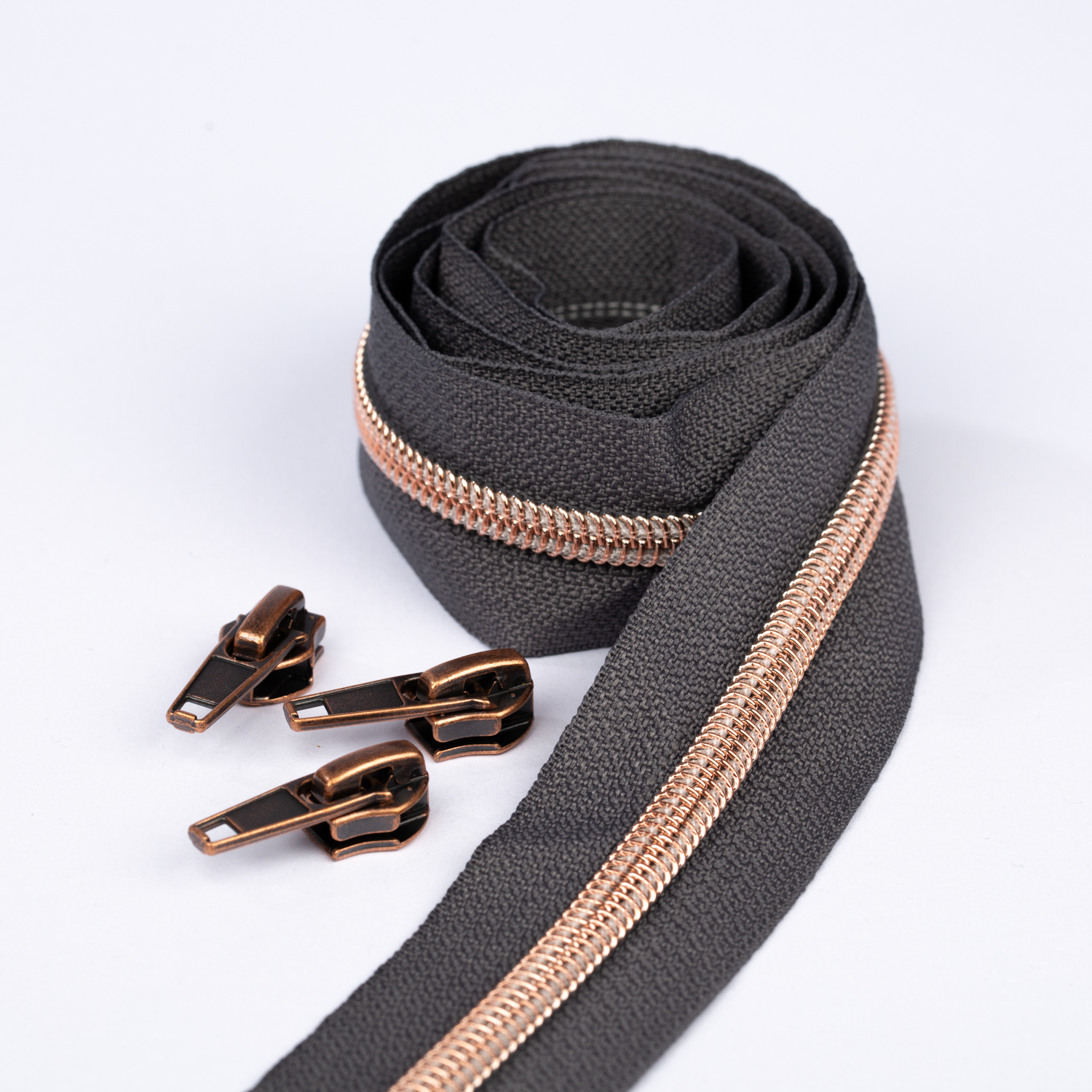 Koppar blixtlås metalliserad 6,5mm pärla | 1m | antracit B39