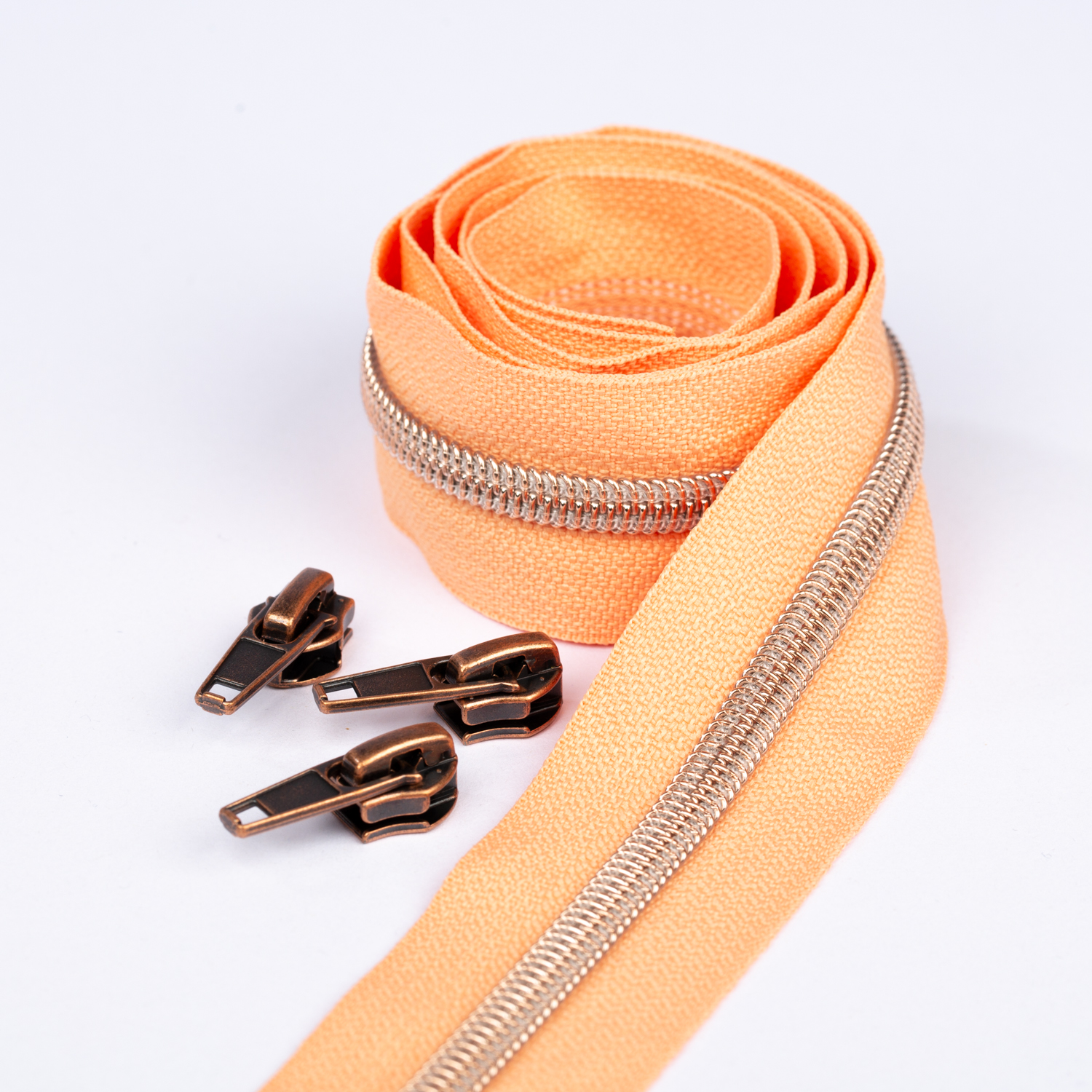 Koppar blixtlås metalliserad 6,5mm pärla | 1m | Aprikos