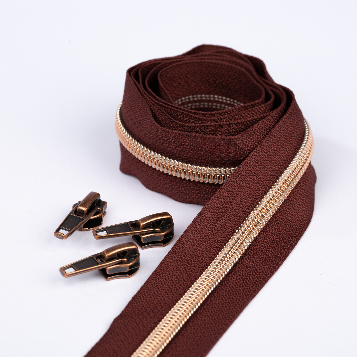Koppar blixtlås metalliserad 6,5mm pärla | 1m | Brun B26