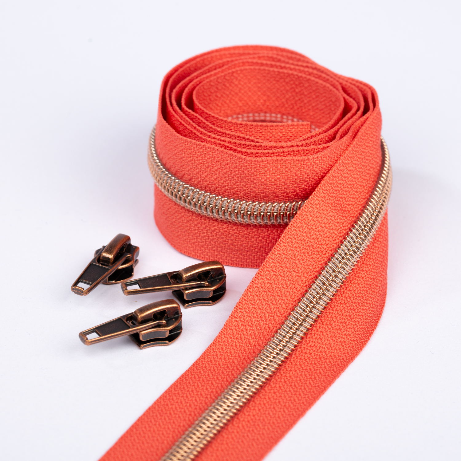 Koppar blixtlås metalliserad 6,5mm pärla | 1m | korall