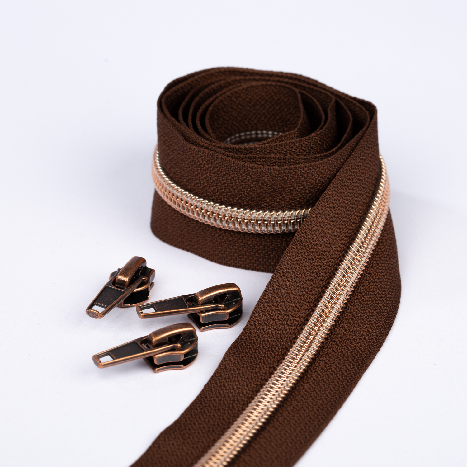 Koppar blixtlås metalliserad 6,5mm pärla | 1m | mörkbrun D568