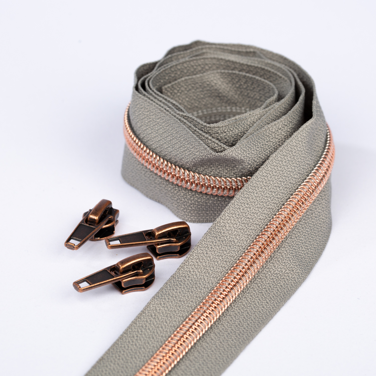 Koppar blixtlås metalliserad 6,5mm pärla | 1m | musgrå B24