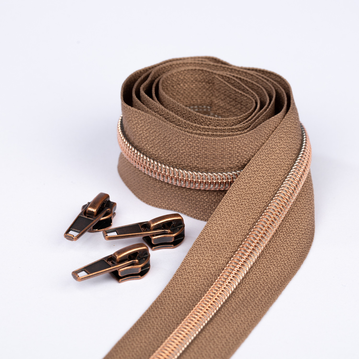 Koppar blixtlås metalliserad 6,5mm pärla | 1m | Taupe D894