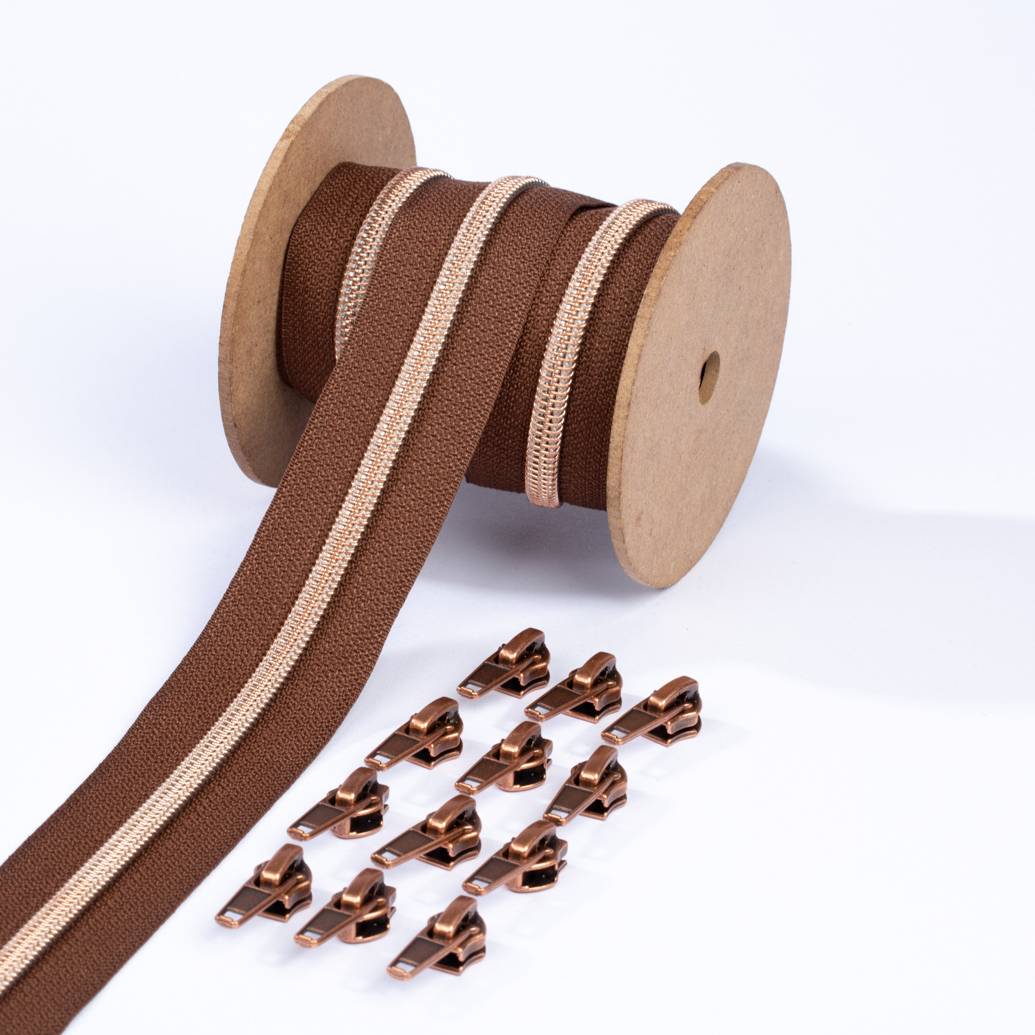 Koppar blixtlås metalliserad 6,5mm pärla | 3m | mörkbrun D568