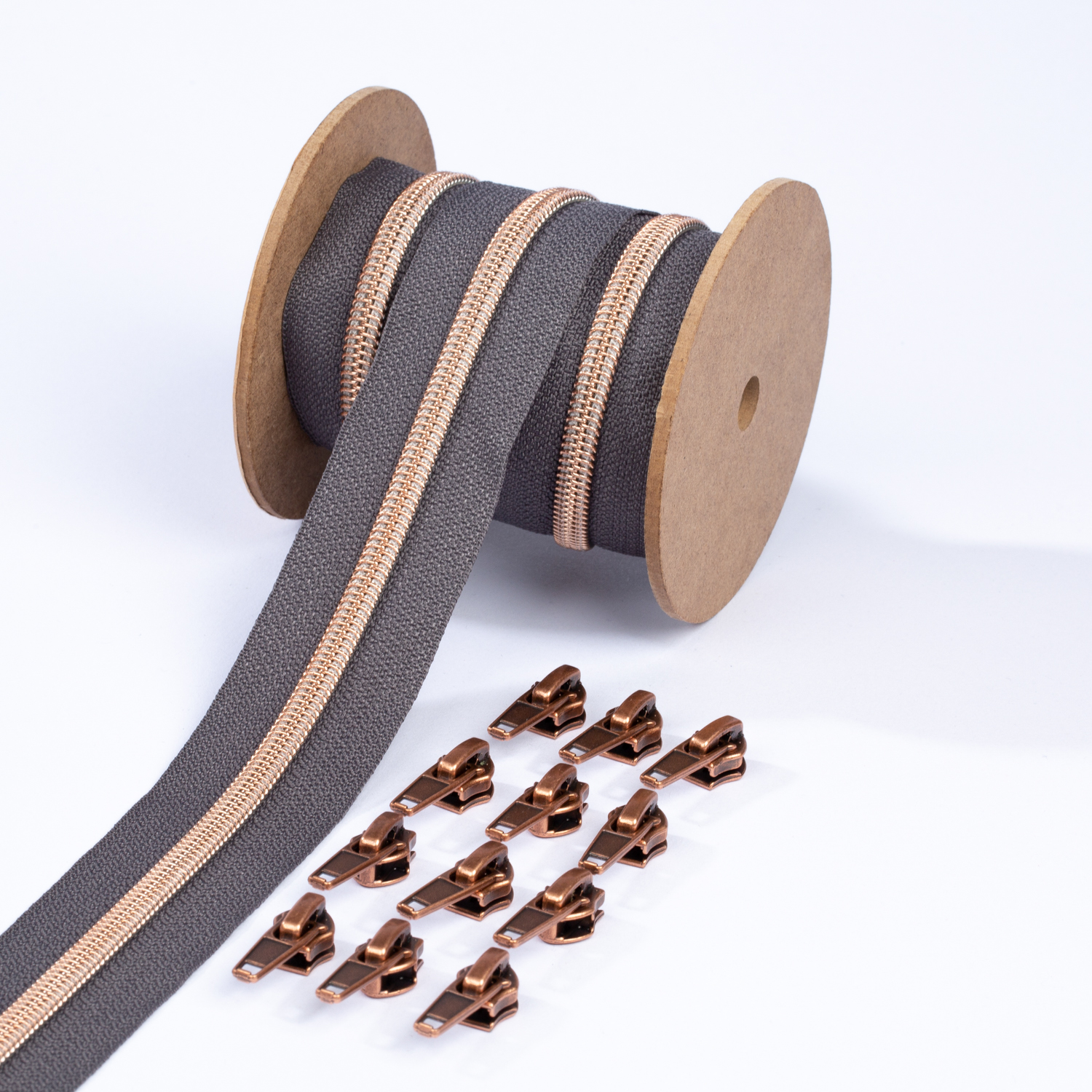 Koppar blixtlås metalliserad 6,5mm pärla | 3m | mörkgrå D306