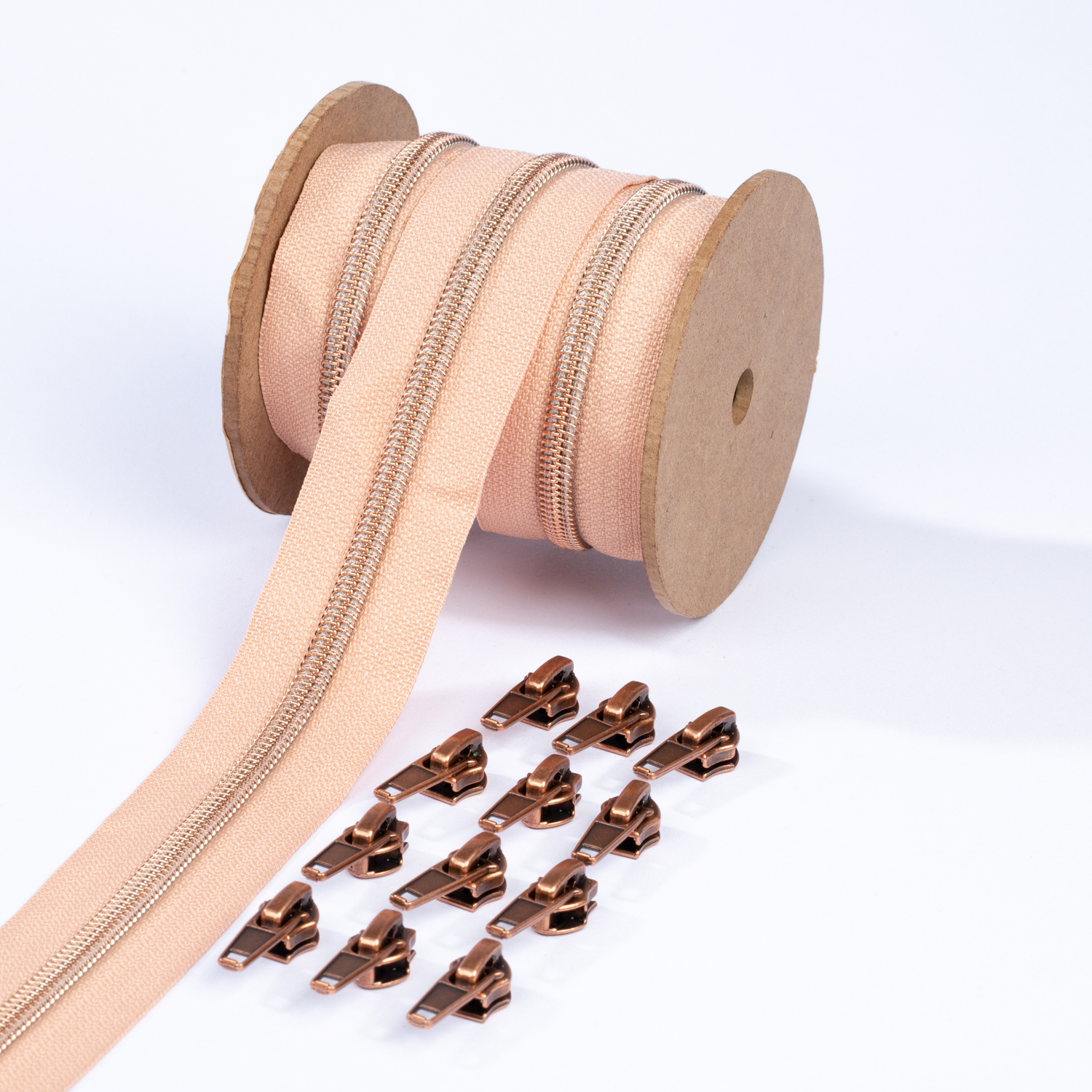 Koppar blixtlås metalliserad 6,5mm pärla | 3m | Nude