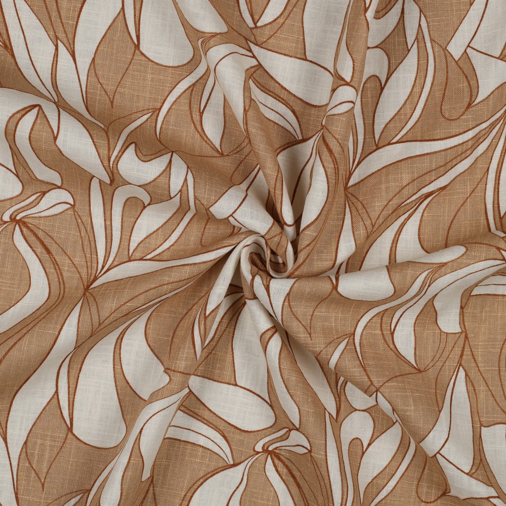 En touch av natur för dina syprojekt: På det mjukt tvättade linnetyget slingrar sig skira blad i fina linjer över en varm, ljusbrun bakgrund. Det diskreta bladmönstret känns både naturligt och elegant – perfekt om du älskar enkla designer med en speciell detalj.