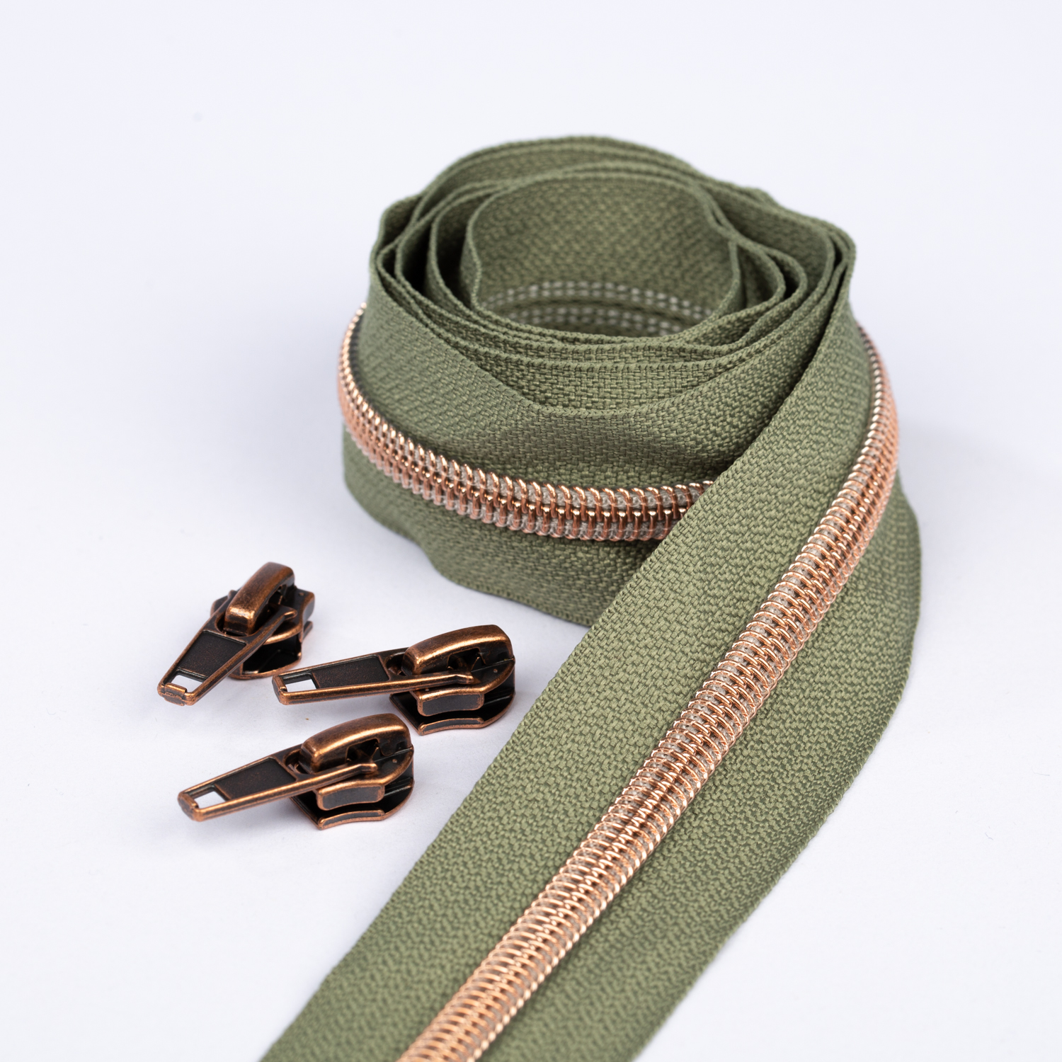 Metalliserat blixtlås i koppar 6,5mm pärla | 1m | Army