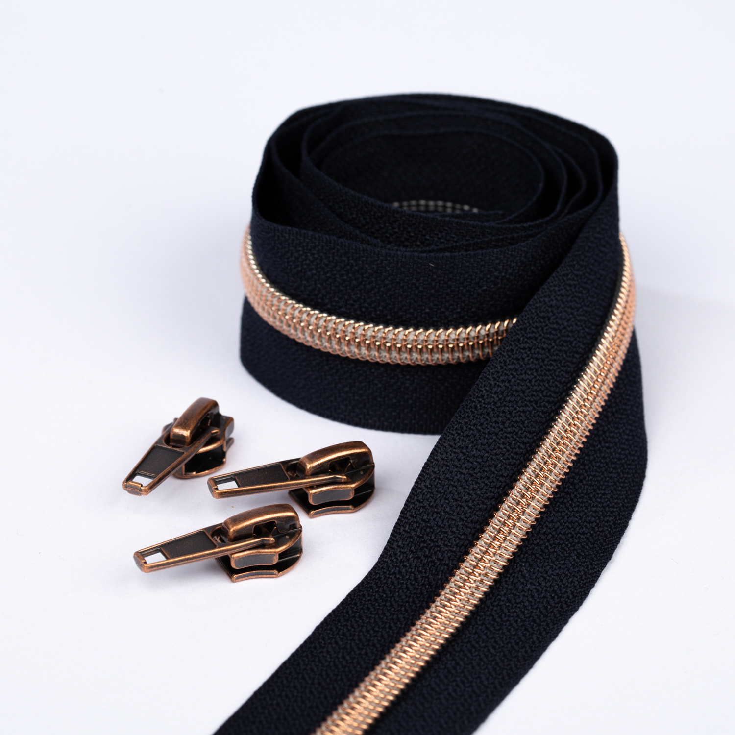 Metalliserat blixtlås i koppar 6,5mm pärla | 1m | indigo
