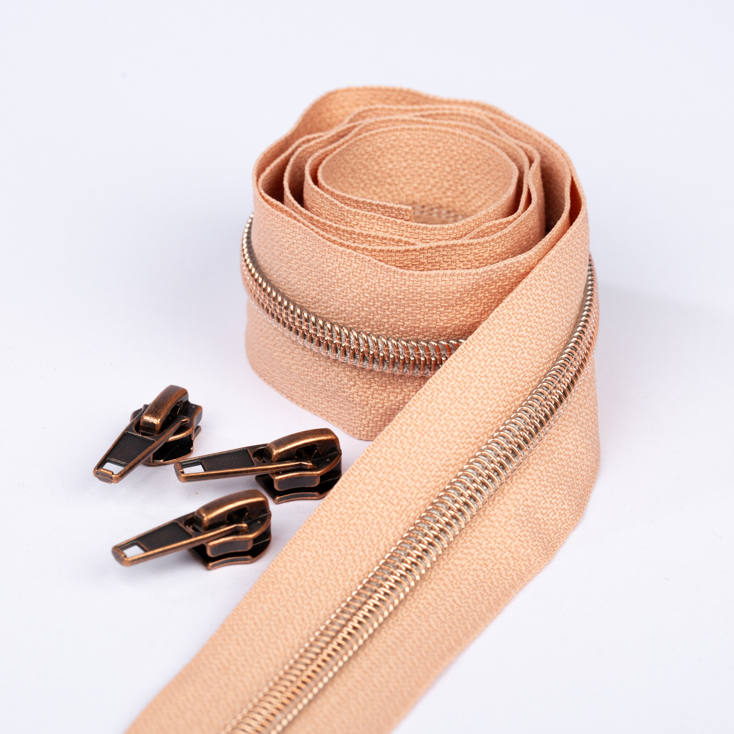 Metalliserat blixtlås i koppar 6,5mm pärla | 1m | Nude