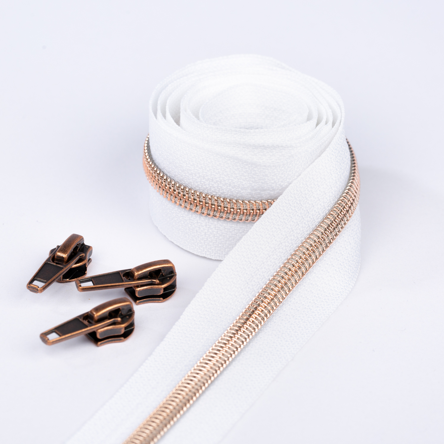 Metalliserat blixtlås i koppar 6,5mm pärla | 1m | vit B3