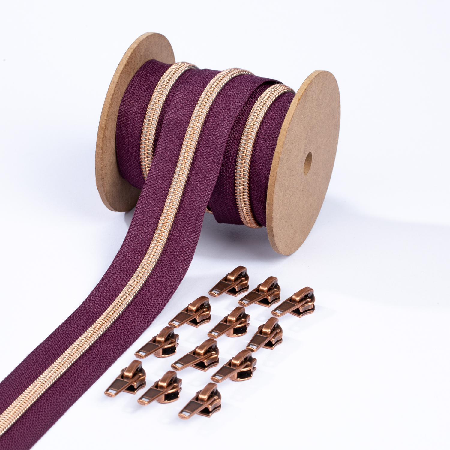 Metalliserat blixtlås i koppar 6,5mm pärla | 3m | bär D230
