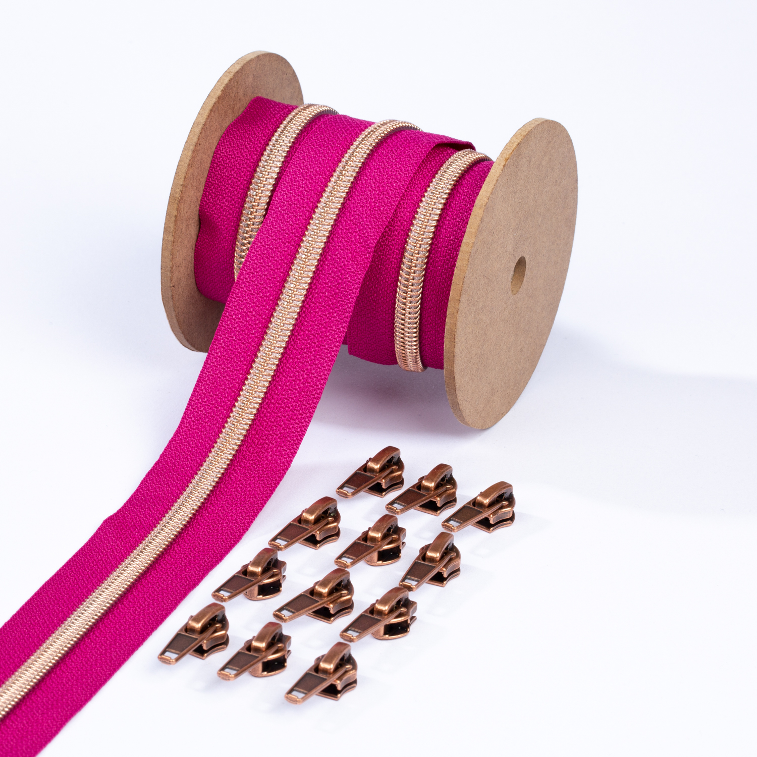 Metalliserat blixtlås i koppar 6,5mm pärla | 3m | Fuchsia