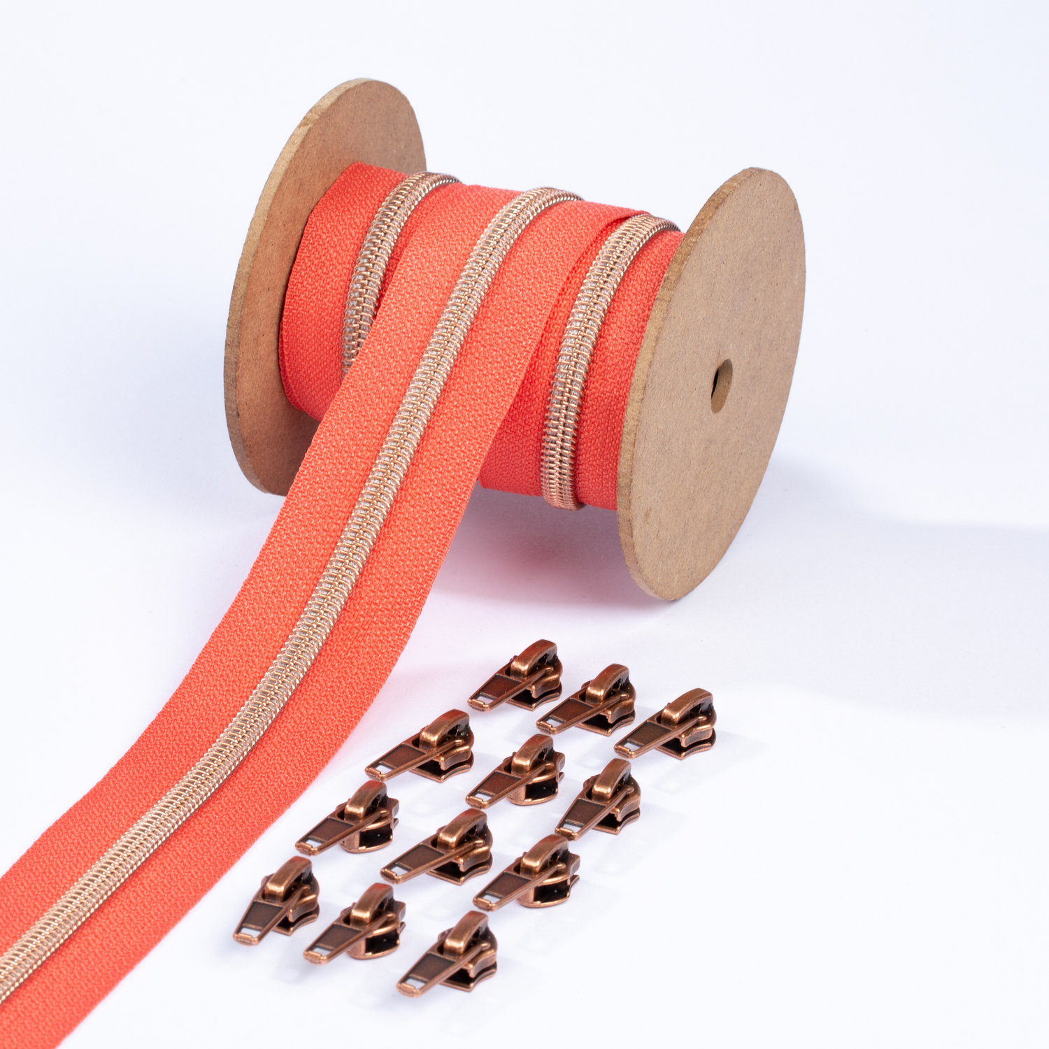 Metalliserat blixtlås i koppar 6,5mm pärla | 3m | korall D816