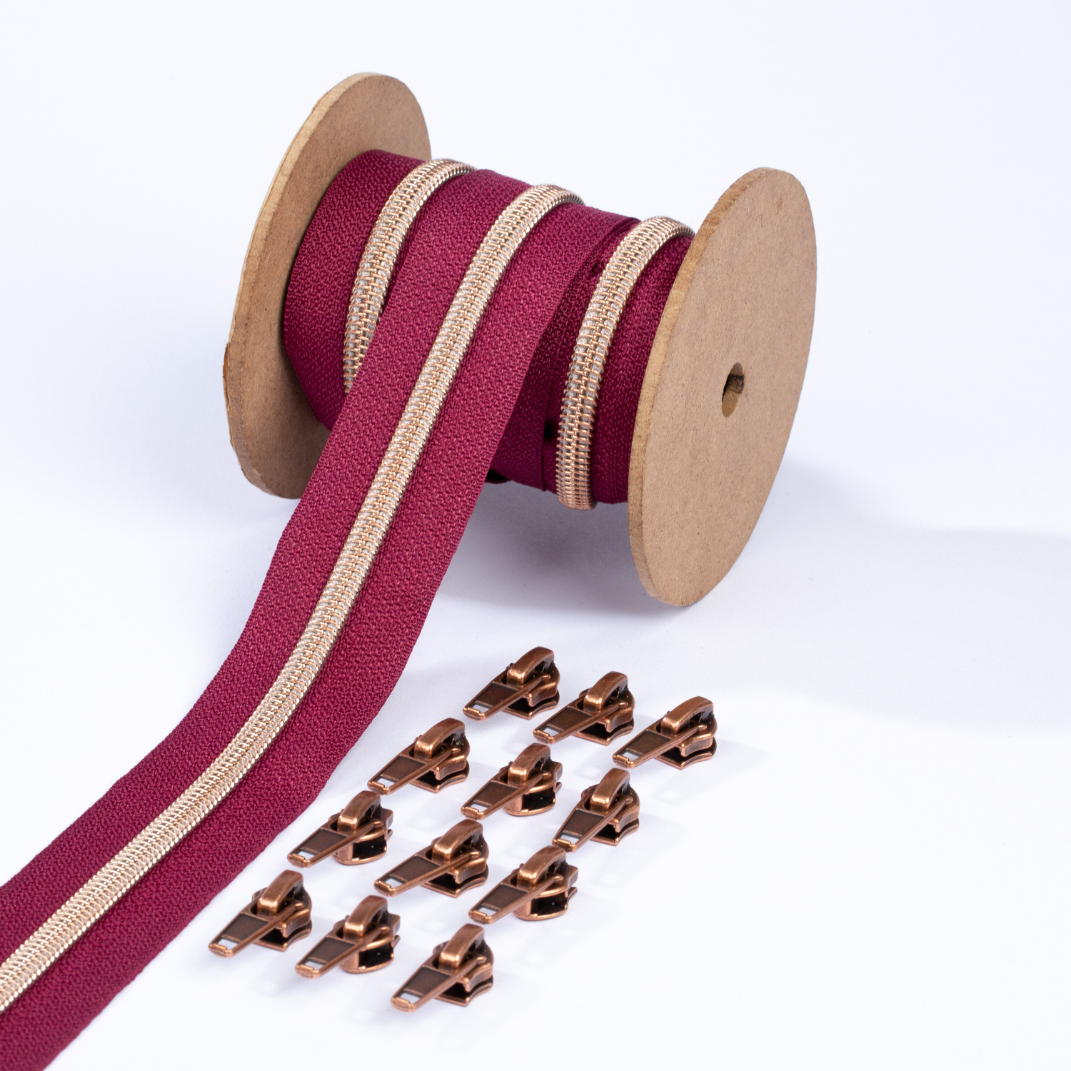 Metalliserat blixtlås i koppar 6,5mm pärla | 3m | ljus bär D525