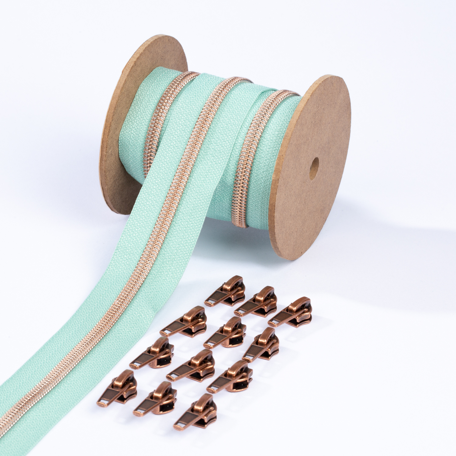 Metalliserat blixtlås i koppar 6,5mm pärla | 3m | Mint D250